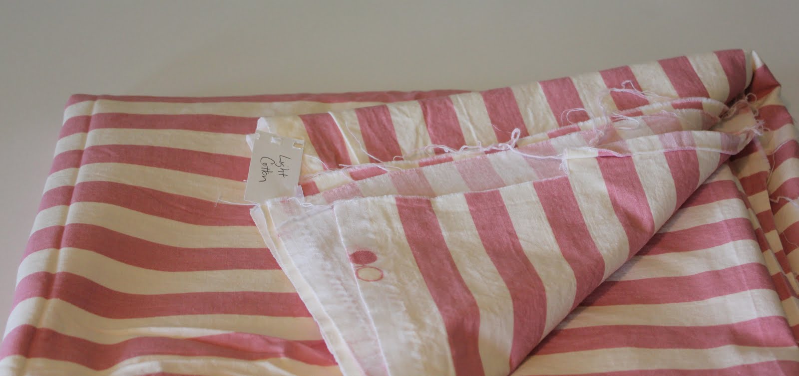 The beige fabric is a curtain panel from IKEA that would make the perfect tote bag. I’m not sure yet about the pink striped fabric but it was too cute to pass up. It was very exciting to find fabric there that hadn’t been used before.