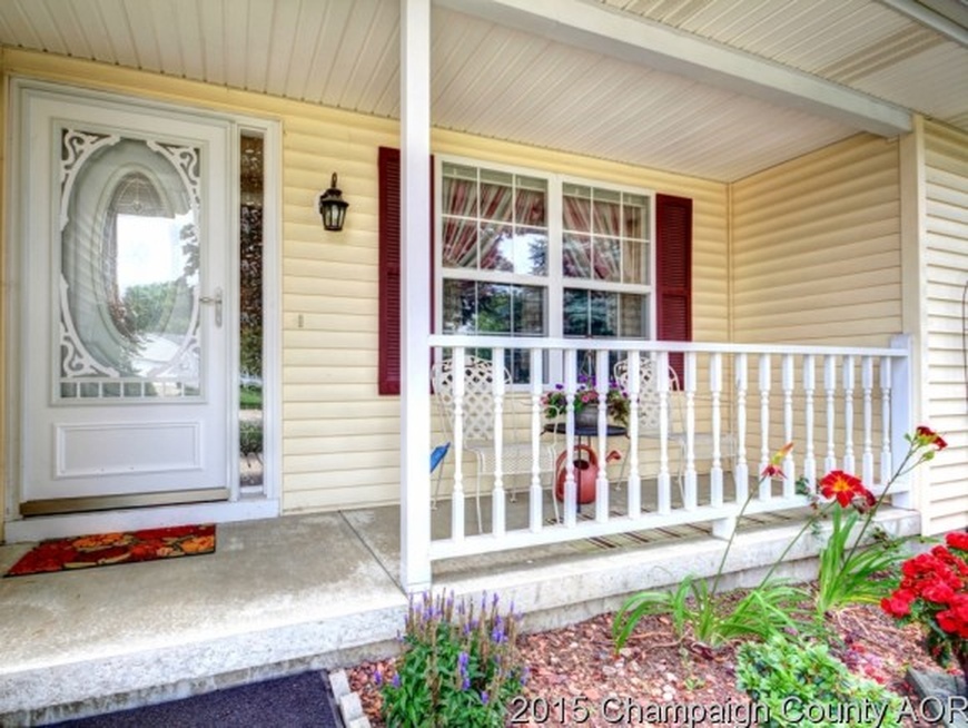 A cute little front porch perfect for a bench, pillows, throws etc. like this or this