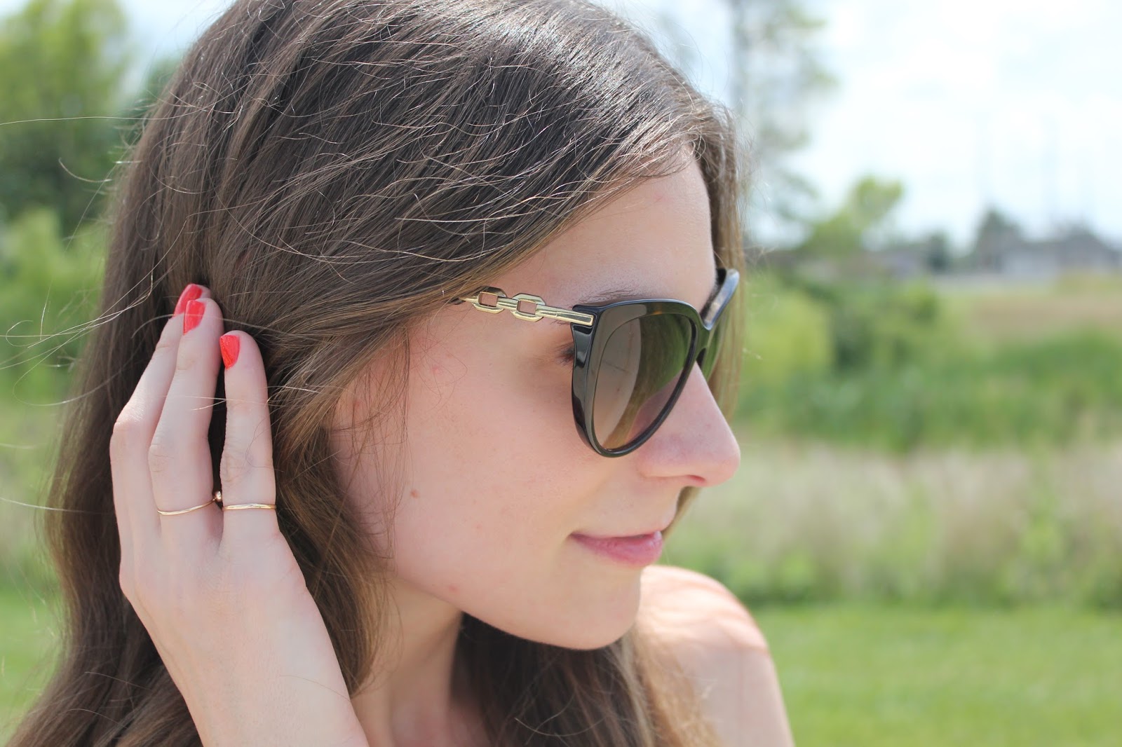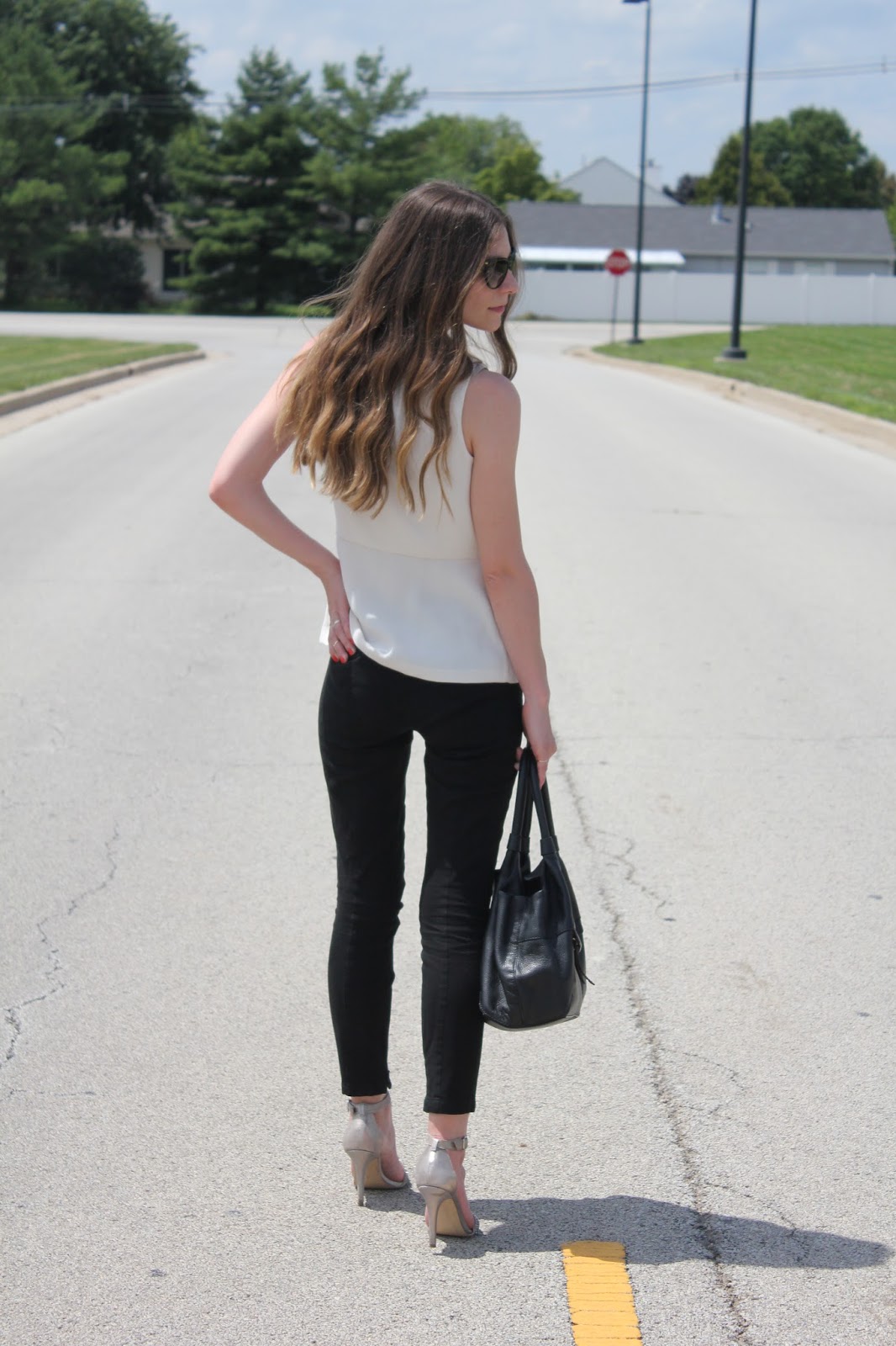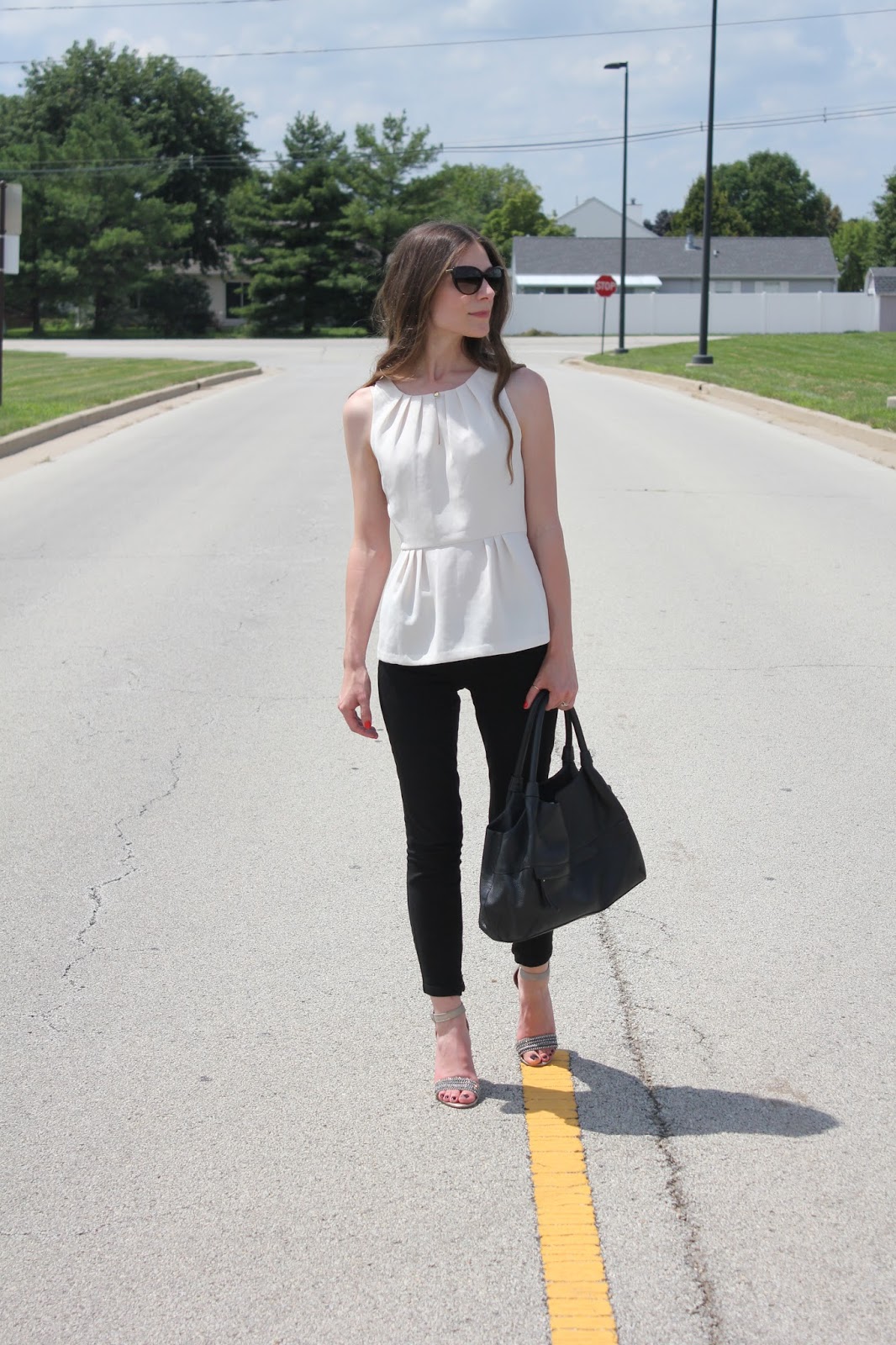 Last weekend I picked up this peplum top and decided it would be the perfect thing to wear this Sunday. Since the top is so beautiful in its simplicity, I decided to keep my look mostly paired down. To keep the overall look from falling flat I punched it up a bit with some fun beaded sandals, cat eye sunglasses, and red nail polish.