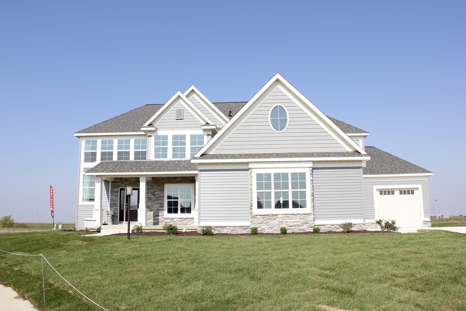 If I had to choose just one, I think the house pictured above was my favorite inside and out. I loved the garage doors, the dark siding, and the pops of white. The inside was just as pretty with high ceilings and an open layout. I only snapped one picture inside of the wood beams on the ceiling, since the house was mostly unfinished.