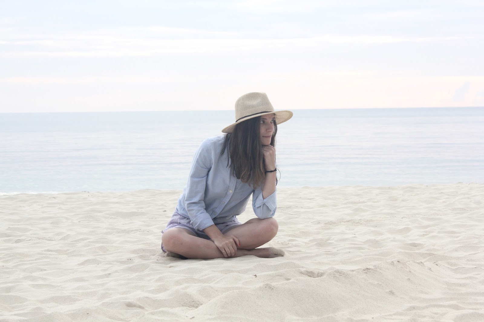 Jamaica is such a beautiful place any time of day, but I have to say that late afternoon just before, until just after sunset is particularly beautiful.The water is so calm it perfectly reflects the most dreamy sunsets making them seem twice as large. Judging by my outfit, I think it’s safe to say I was impacted by this magical time of day. My blue oxford button up and purple running shorts are not something I’d normally pair together, but being influenced by my surroundings they seemed just right.