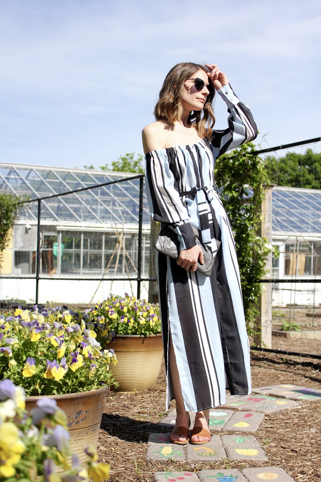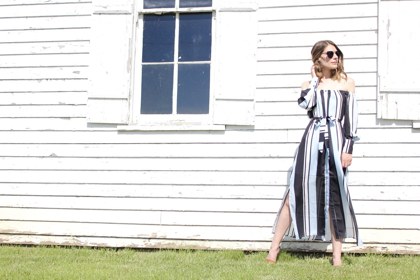 Overall I really do like the dress, this particular striped pattern I’m seeing more and more of right now, plus the long sleeves paired with the off the shoulder look is a nice balance. Currently the dress retails for $36.