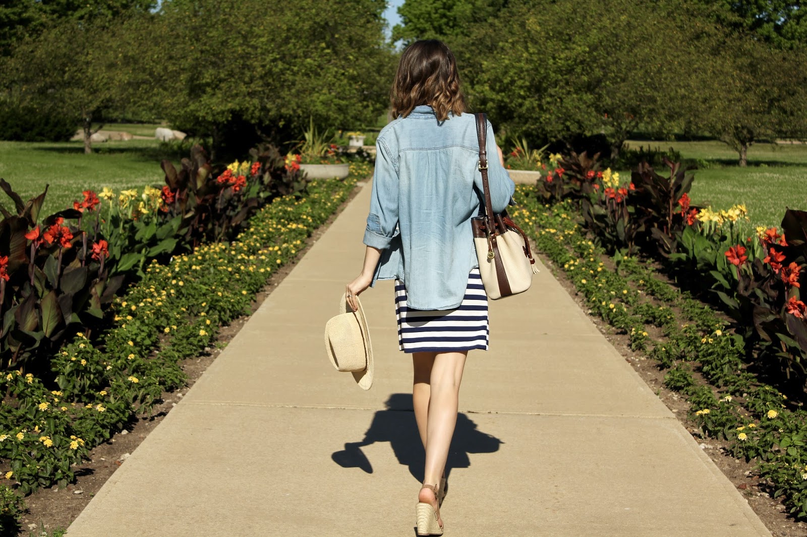 With the 4th of July almost here and the hottest weather we’ve had so far this year, I decided to keep my look as cool and comfortable as possible in this airy cotton t-shirt dress and chambray shirt.