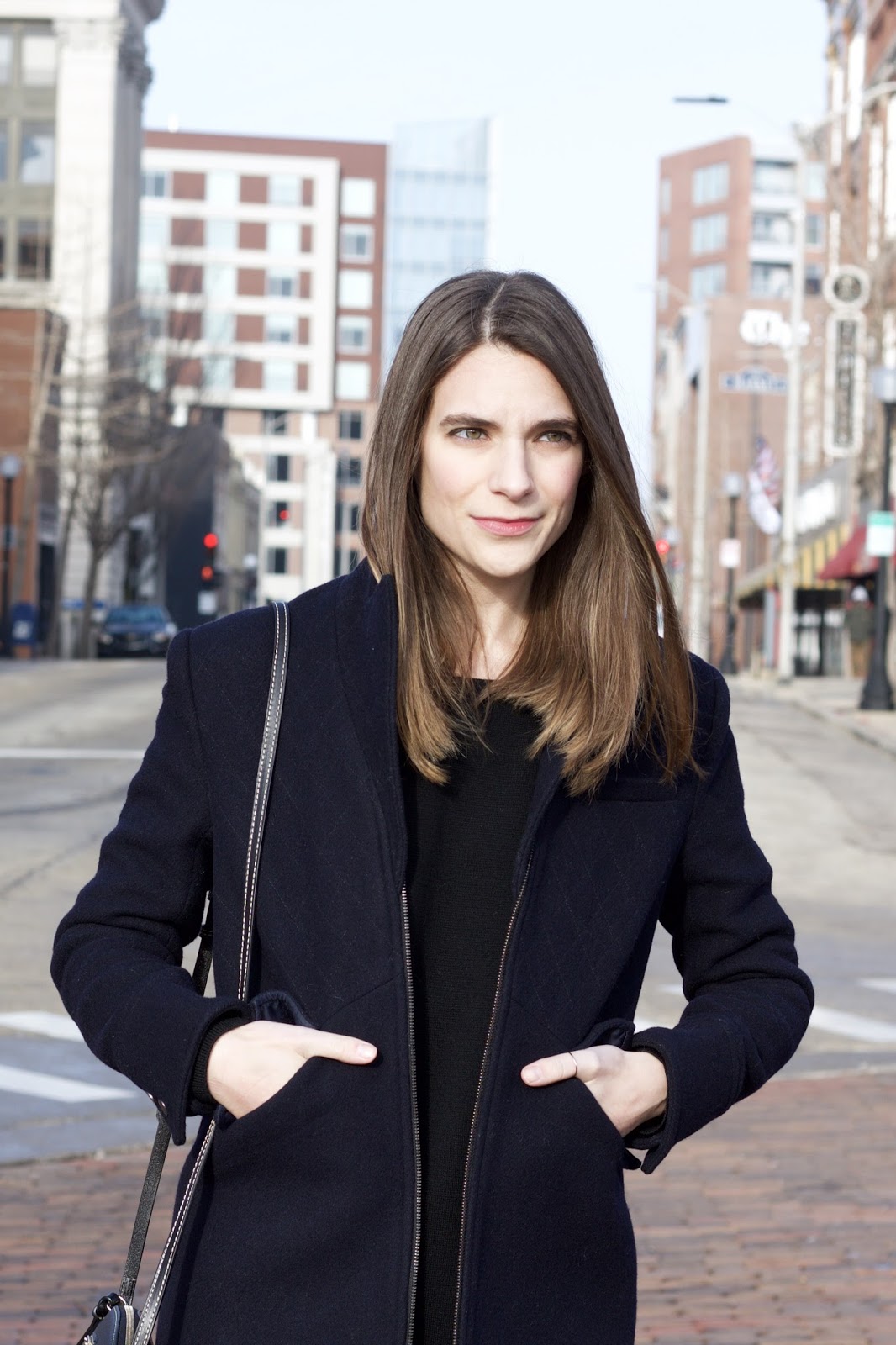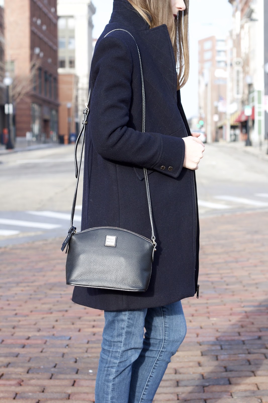 I paired this navy coat with blue jeans, plus a black sweater, purse, and shoes. You can see past examples of when I paired navy and black together here and here.